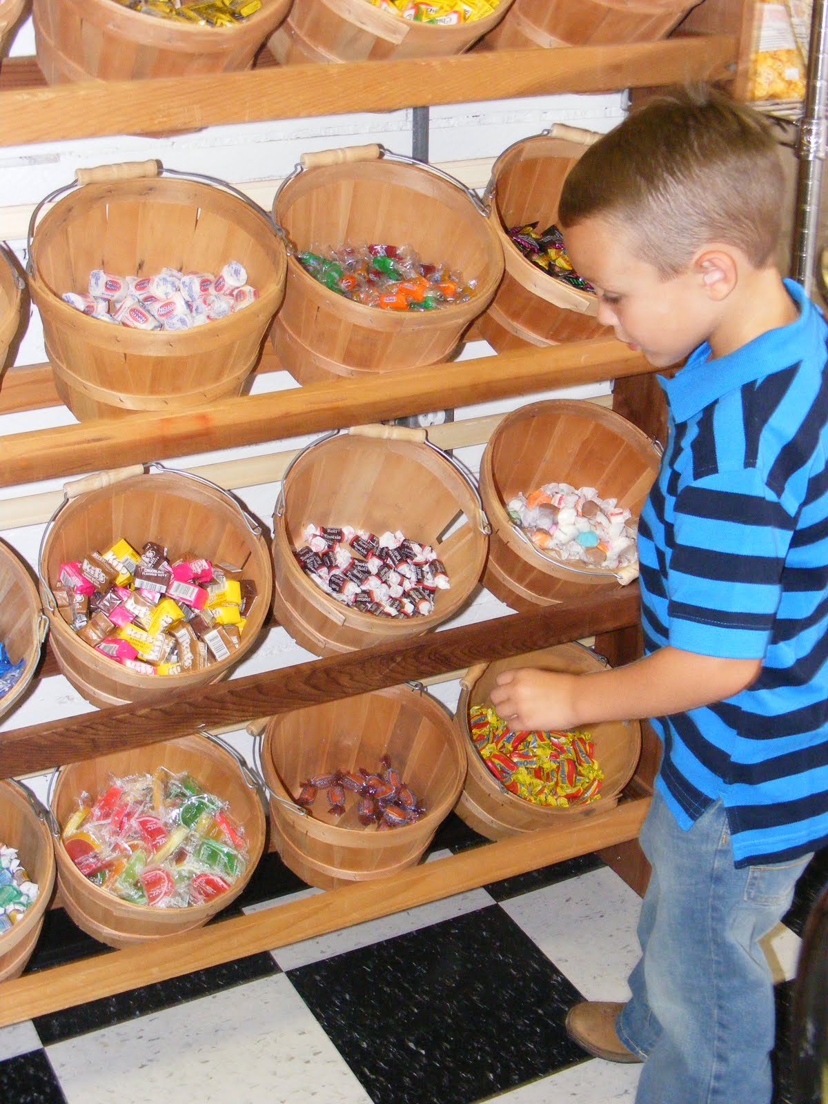 To say that this child was excited is an understatement. We had so much fun loading our little paper goodie bags with this candy & that candy....and checking out the "old-timey" candy that they have...