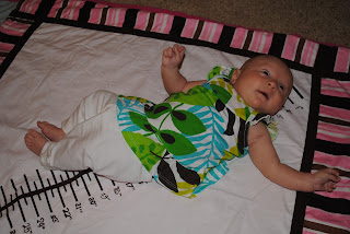 Eliette has this cool little blanket where we can measure her length.... Here's Bitty Girl at 2 months old... not that she would really cooperate with the measuring aspect....